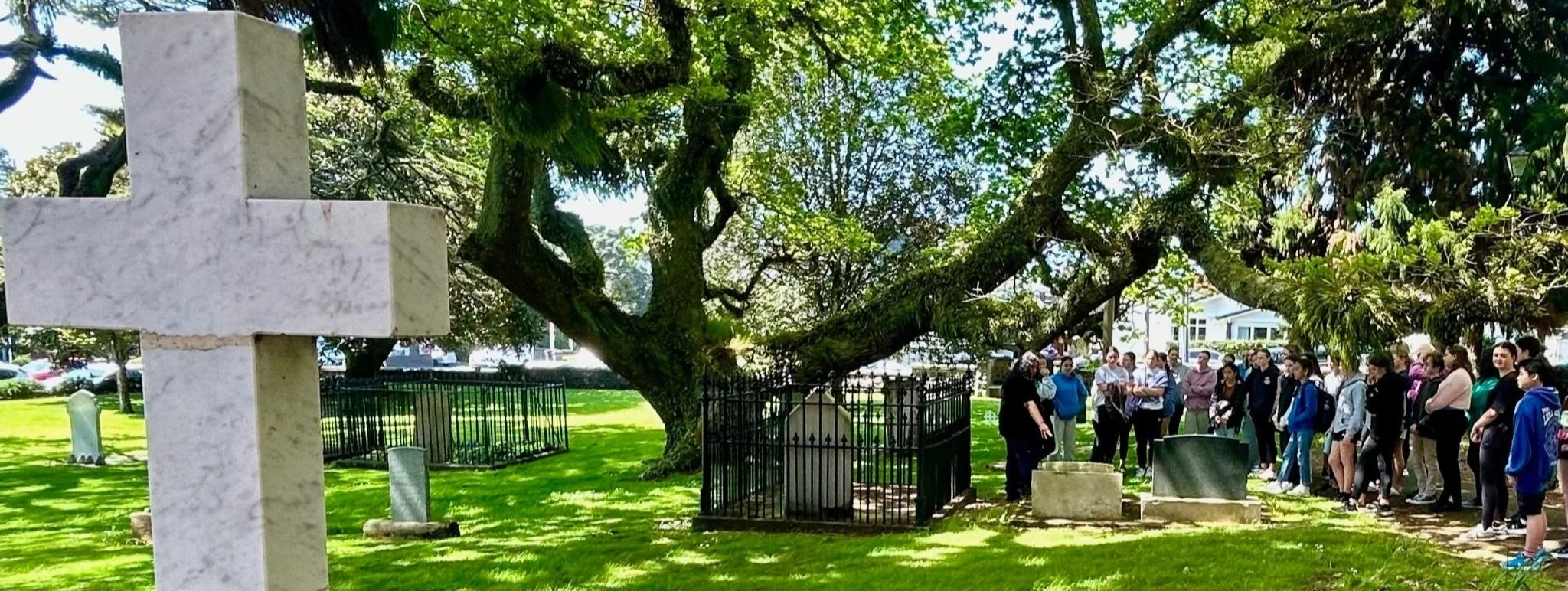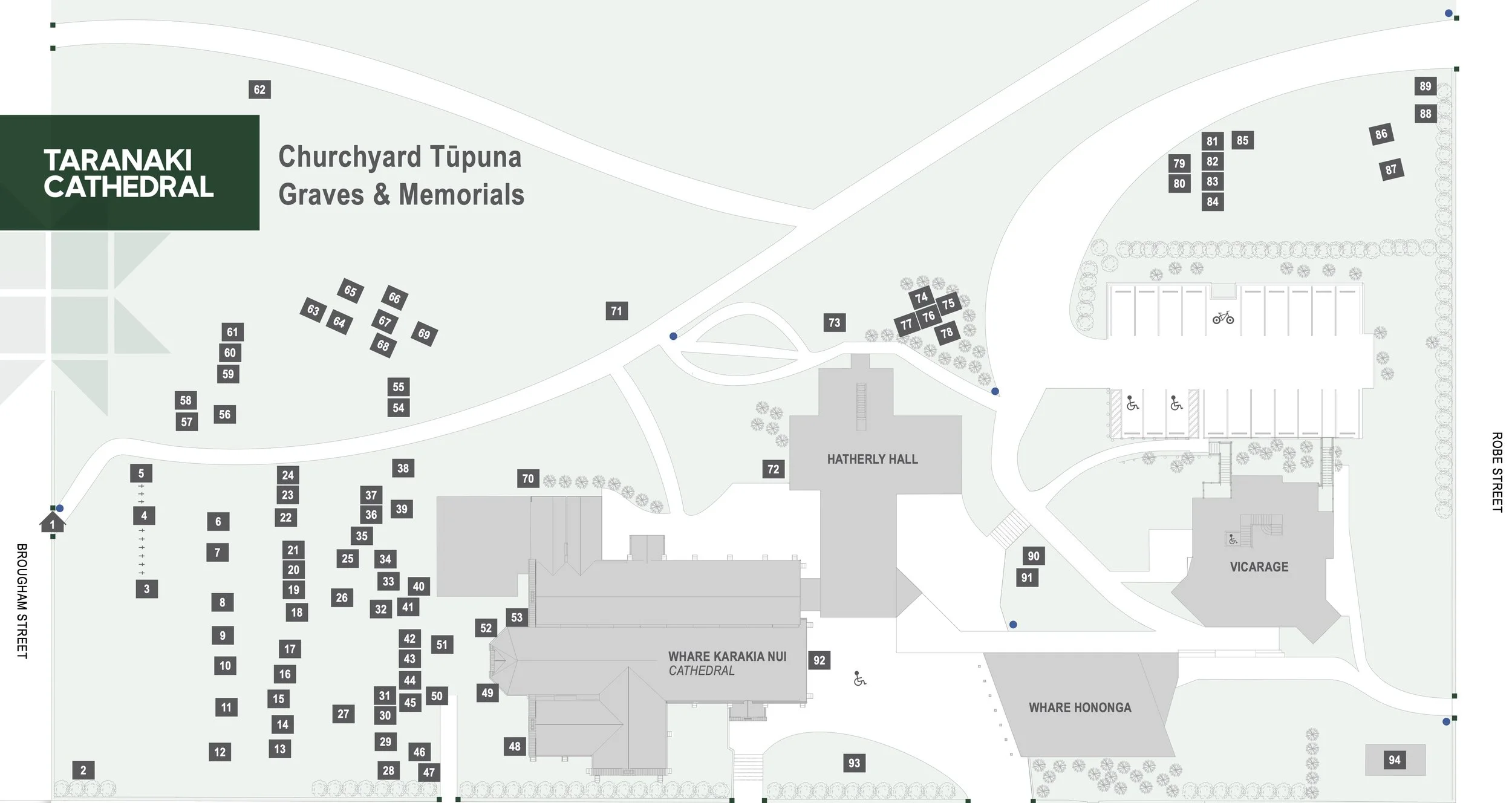 The churchyard surrounding the Cathedral has been many things: a garden in pre-colonial times, a cemetery from 1842, an army exercise ground for 10 years, and a paddock for bullocks and horses who grazed around graves until the 1890s. A defining feature is the open space. In 1861, during the Taranaki Wars, the government prohibited all burials in New Plymouth, leaving room for the now-historical trees. Here, two worlds come together as native and settler share the same soil, inviting reflection and reconciliation.